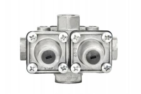 Клапан 100-3515210. Предназначен для предохранения тормозной системы автомобиля от потери сжатого воздуха в ней при питании сжатым воздухом тормозной системы прицепа. При снижении общего давления из-за нарушения герметичности потребителей до заданного уровня, например при обрыве магистрали прицепа, он отсоединяет тормозную систему автомобиля от потребителей. Кроме того, клапан предотвращает прохождение сжатого воздуха от потребителей, например, из питающей магистрали прицепа в тормозную систему тягача.